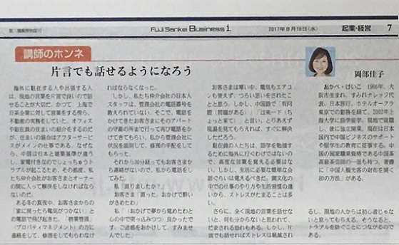 先日、≪SankeiBiz≫にアップして頂いたコラムの新聞バーション≪Fuji Sankei Business i.≫(8月16日号)が届きました。