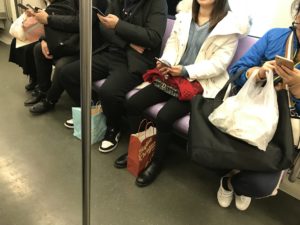 地下鉄の中ではほぼ全員スマートフォンとにらめっこ。だから、以前のように大声で話している人は皆無といっても過言ではない状況で、とても静かです。