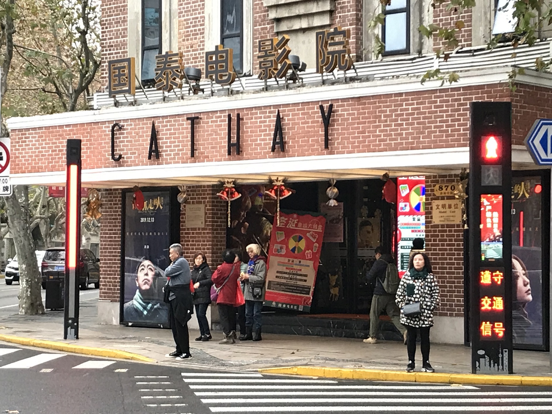 歩行者が信号無視をしないように、ネオンサインかと思うほど大きな信号機が設置されています。