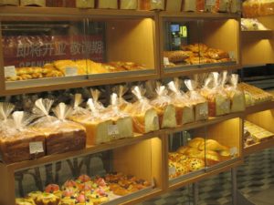 一方、中国では焼き立てのパン屋さんができたときから、ガラスケースの中に入れて売られていました。